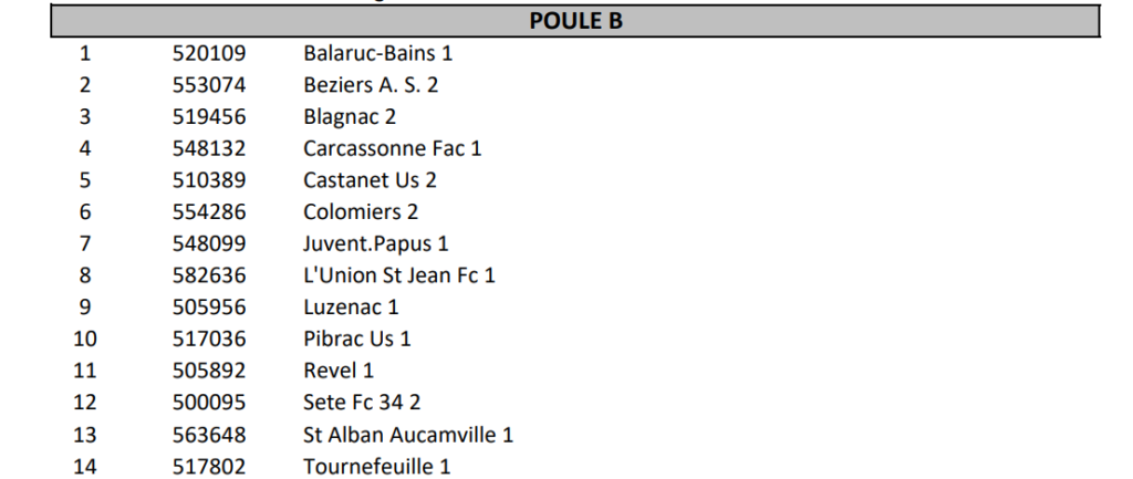 Pour notre équipe B, là encore la poule est inchangée. Les hommes de Greg Lacoste devront faire oublier leur départ timide de la saison dernière. Beaucoup d’écuries rodées aux joutes du Régional 3 dans cette poule! Nos jeunes Isards devront savoir tirer leur épingle du jeu dans ce championnat relevé avec en prime un derby face à Pamiers!